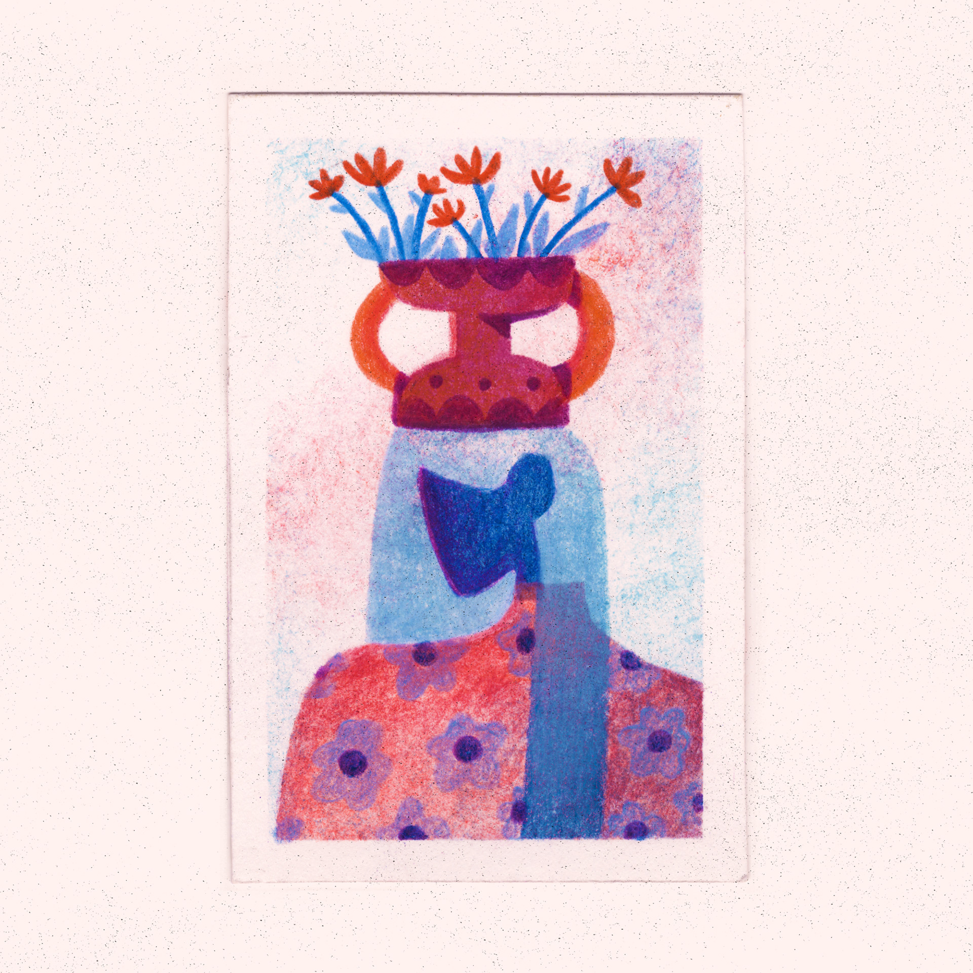 , wandering through mini portraits and landscapes with stencil, inkpad & color pencils.