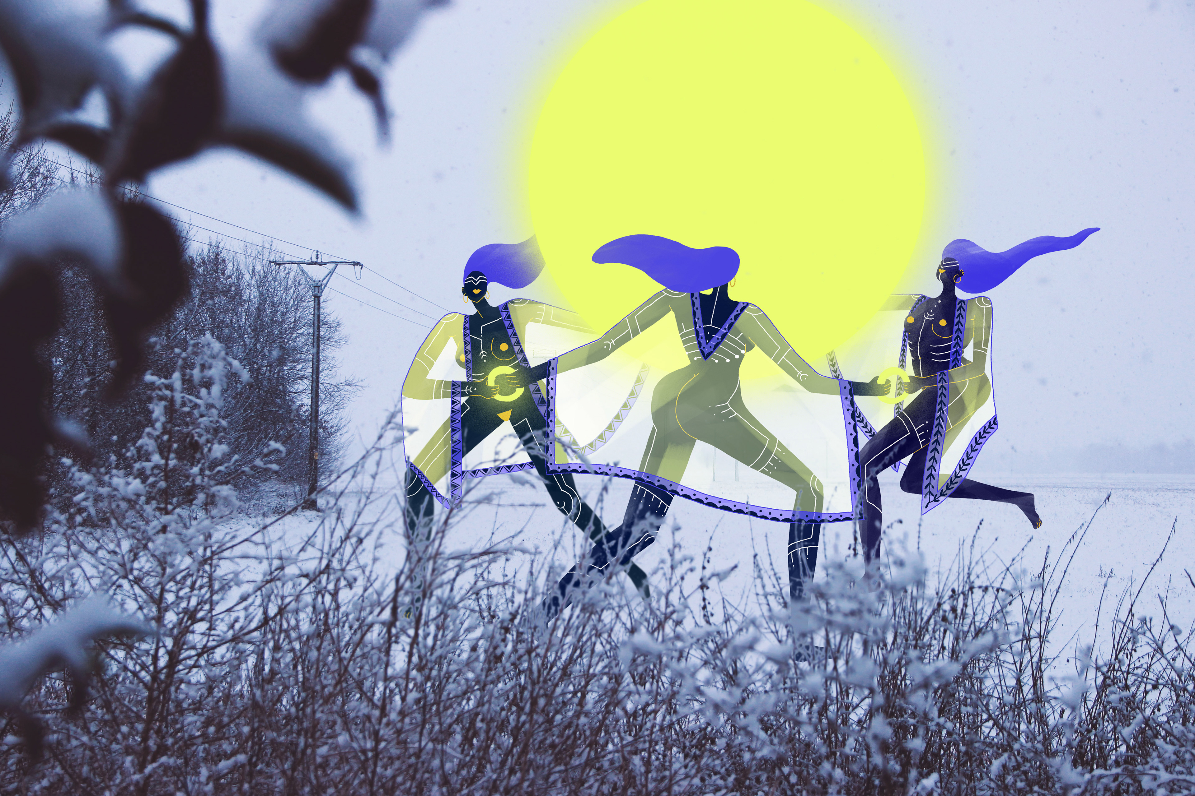 , or Yuletide, is an indigenous winter festival celebrated by the eastern & northern peoples. These three witches are enjoying the Solstice celebration with a warm dance in the snowy Slovakian landscapes.